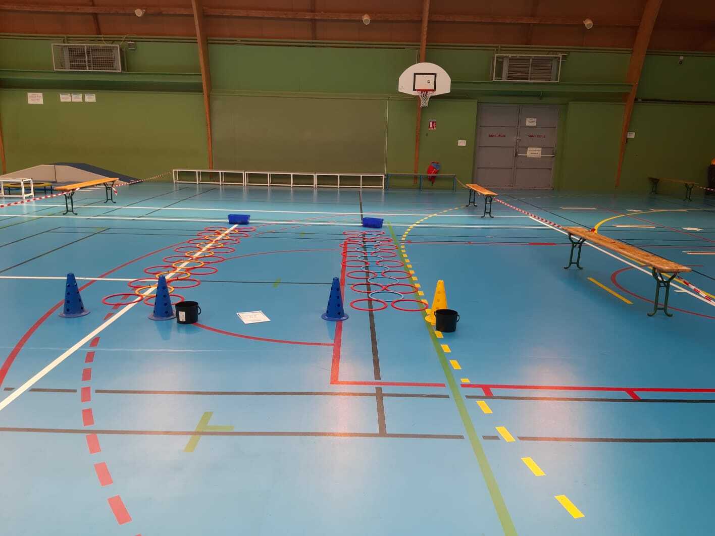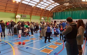 Pour accueillir autant d'enfants (et leurs accompagnateurs), les organisateurs ont du adapter la configuration des lieux en déplaçant des ateliers et des épreuves de courses sur la piste à l'extérieur, ainsi que la buvette (merci à la météo clémente...).