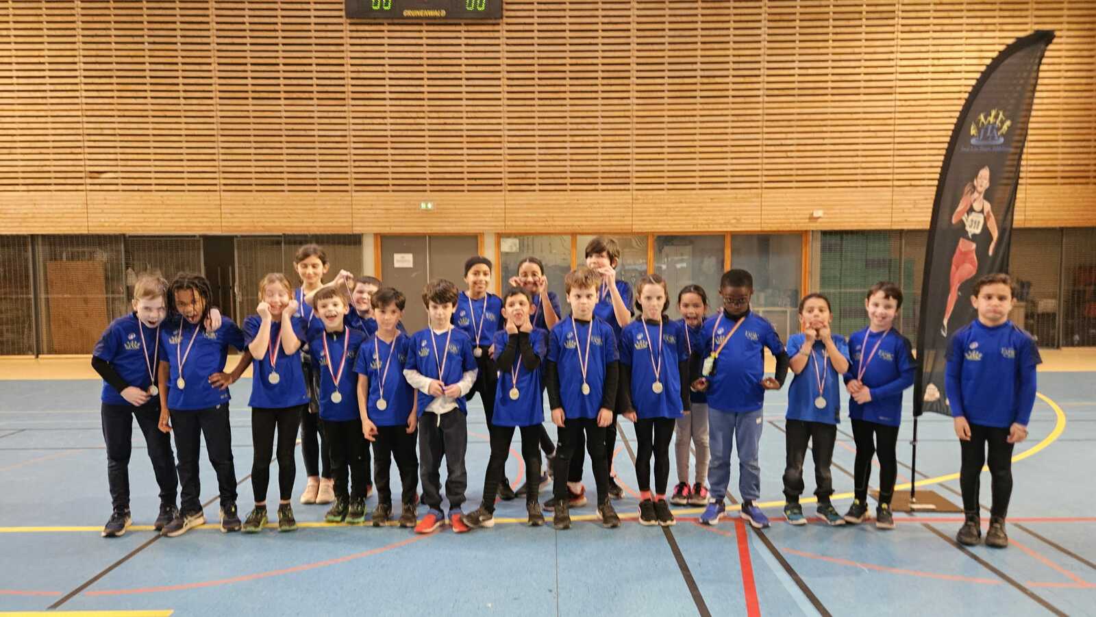 Le samedi 7 fevrier 2026, 19 jeunes athletes jocondiens ont participé à l anim athle en salle organisé par le club de Saint-Pierre, qui a regroupé 132 participants repartis en 22 équipes.