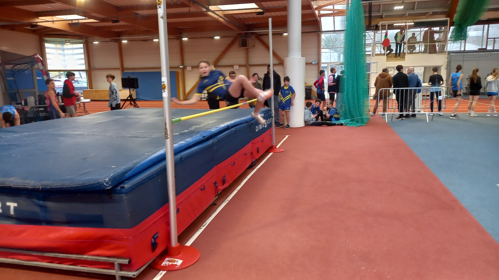Notre meilleure benjamine, Lindsey, se classe 5eme (94 points, 7eme au scratch, 3 records battus en longueur, poids et 50m) et notre meilleur benjamin, Lino, 7eme (81 points, 10eme au scratch, record personnel en longueur).