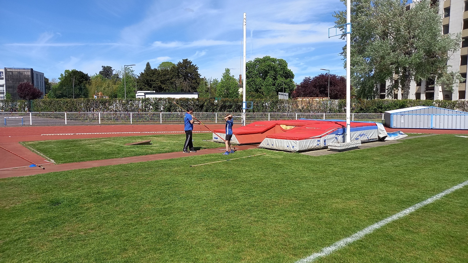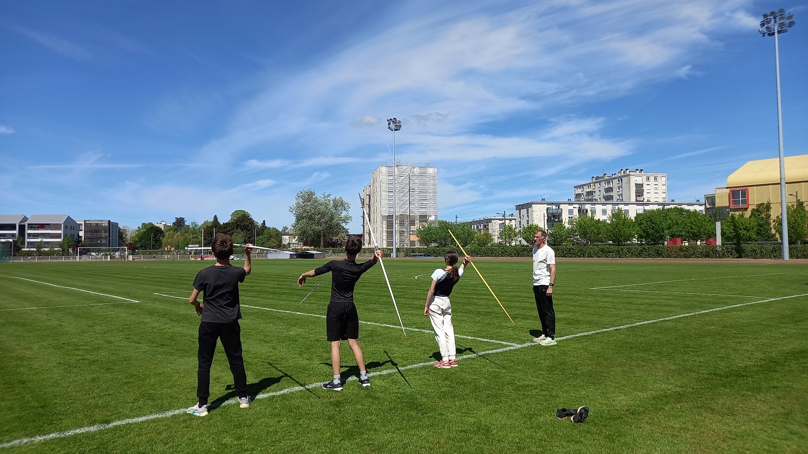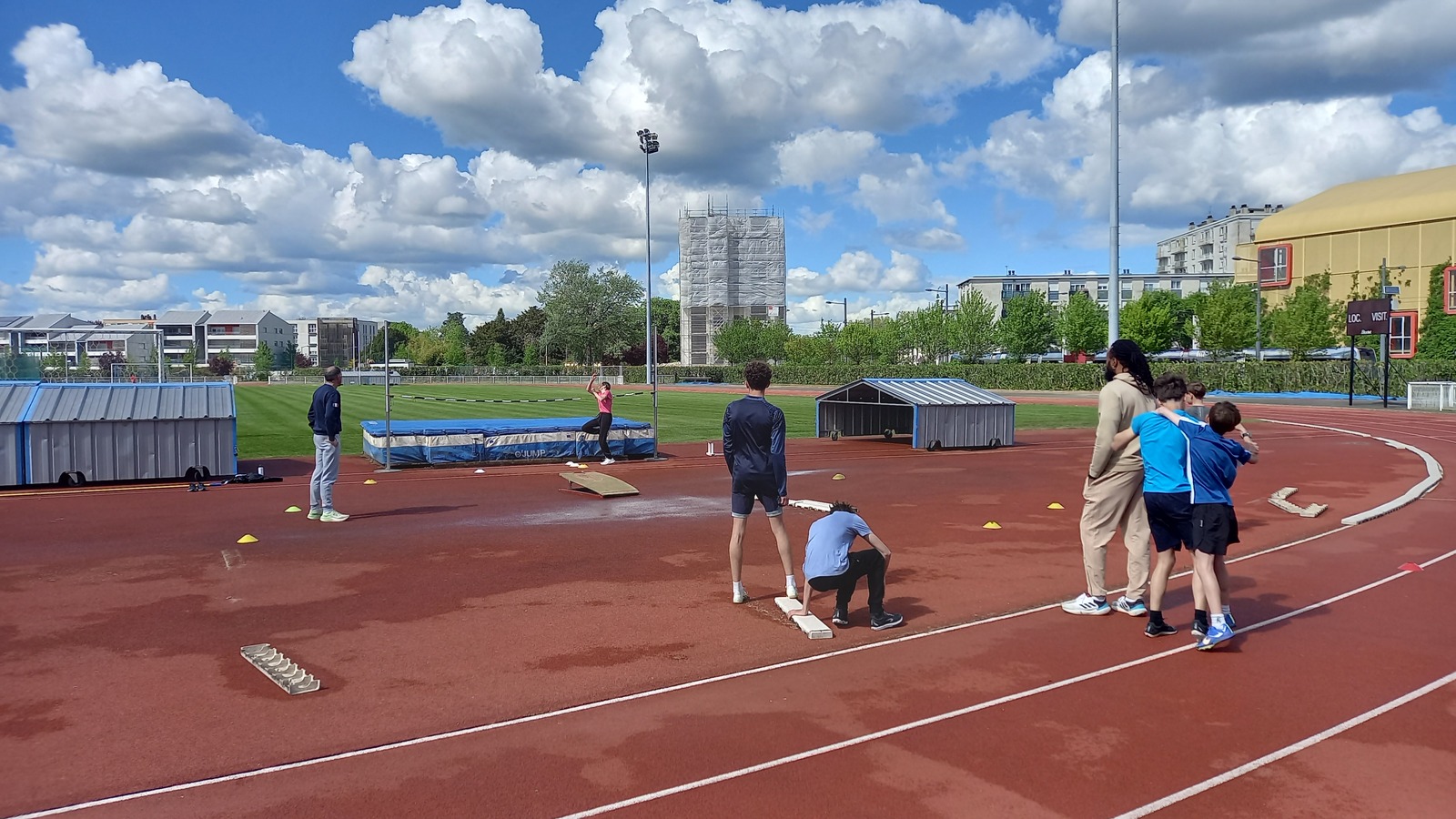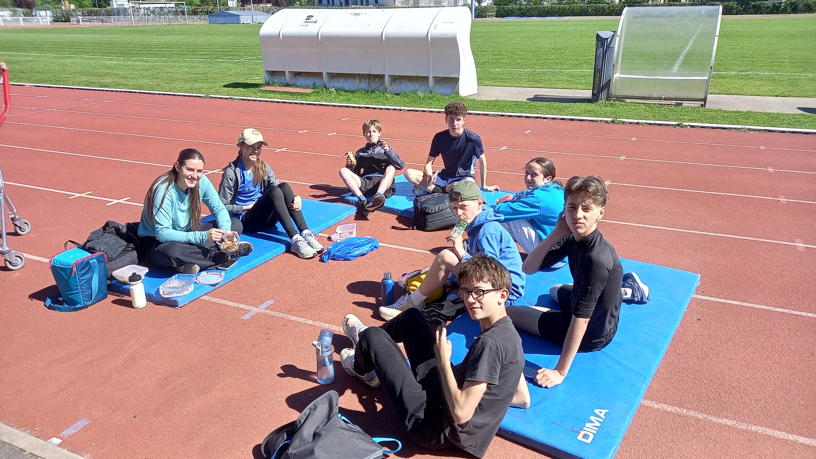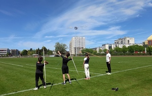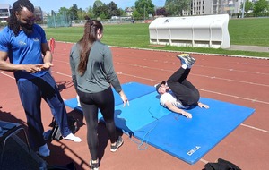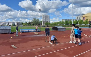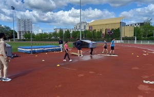 Malheureusement, peu d'athlètes se sont finalement inscrits mais les 2 benjamins, 5 minimes, 1 junior et 1 senior présents ont pu parfaire leur technique au sprint, aux sauts (hauteur, triple, perche et longueur) et aux lancers (disque et javelot) grâce aux precieux conseils de Noah, Michael, Louis, Maeva et Fabrice.