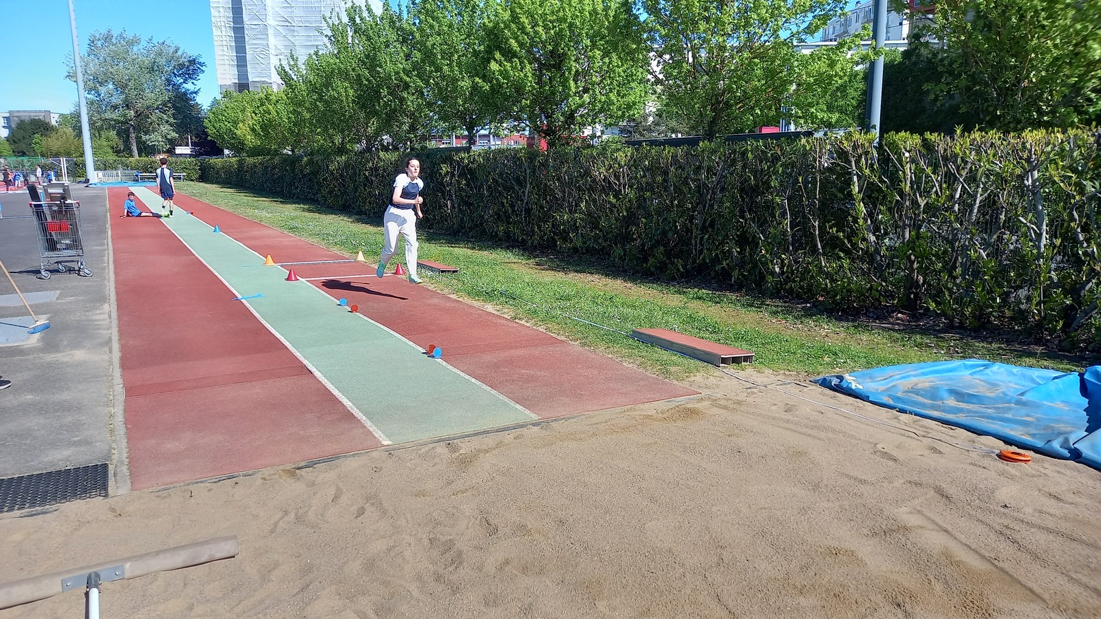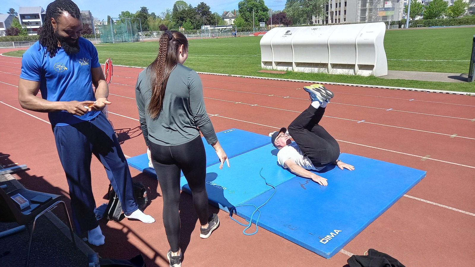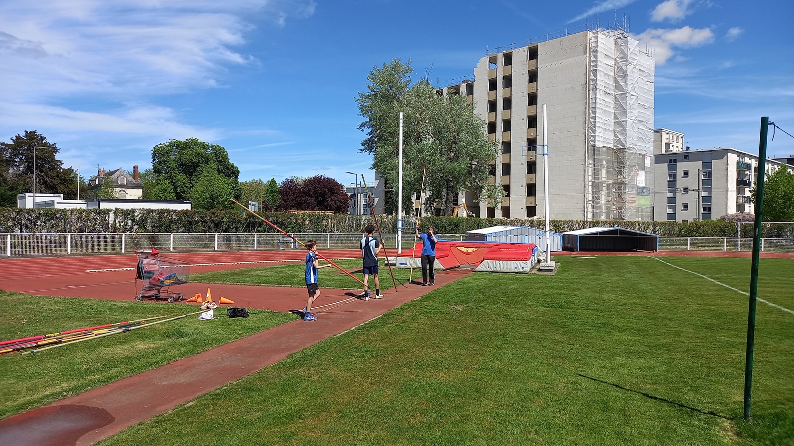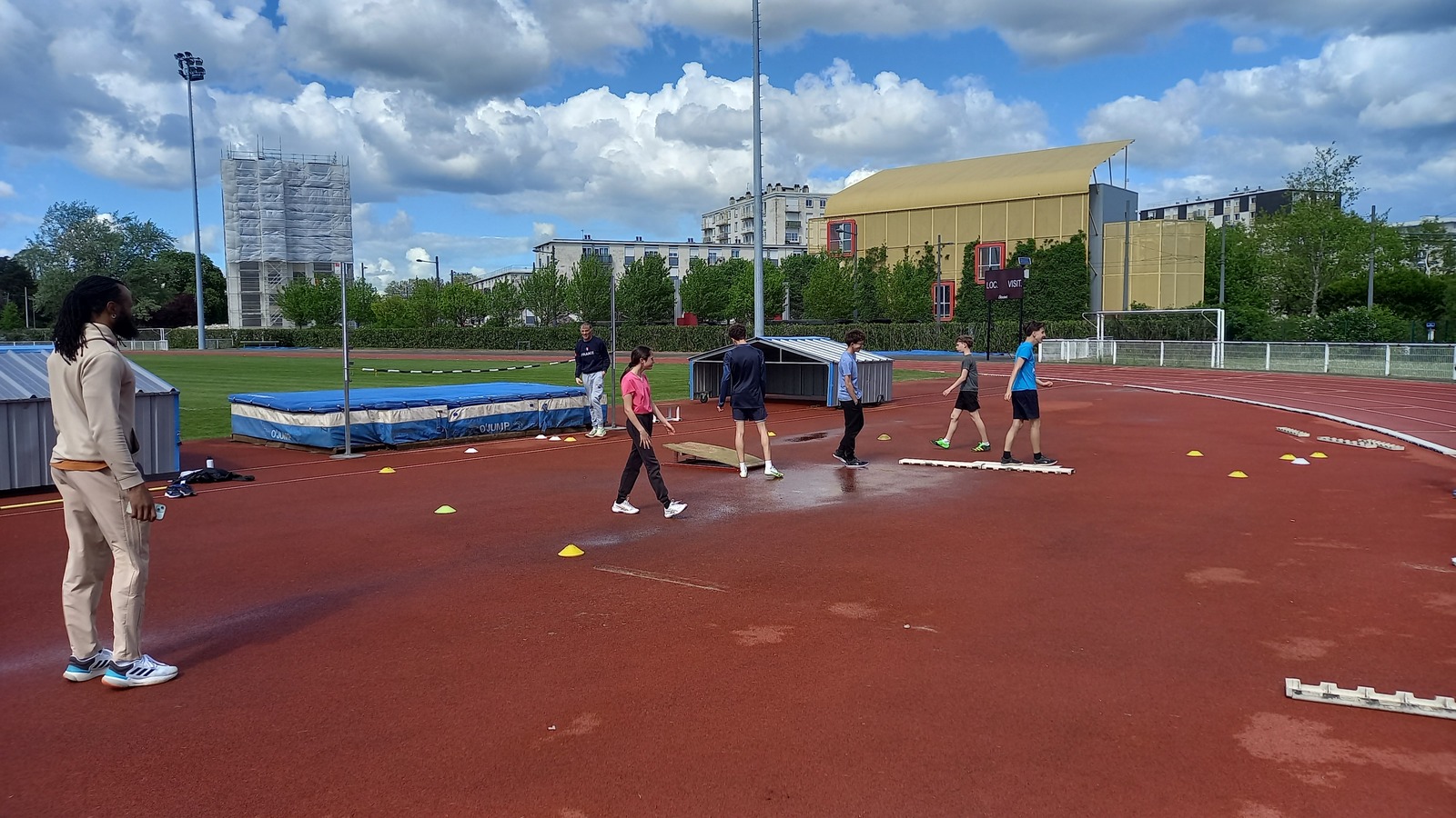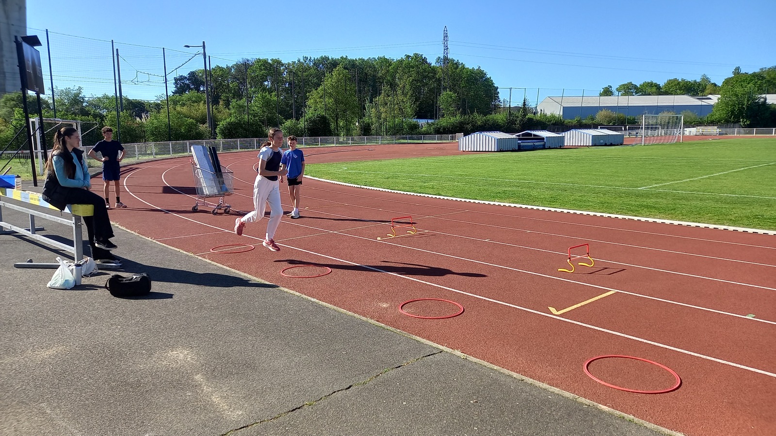 Malheureusement, peu d'athlètes se sont finalement inscrits mais les 2 benjamins, 5 minimes, 1 junior et 1 senior présents ont pu parfaire leur technique au sprint, aux sauts (hauteur, triple, perche et longueur) et aux lancers (disque et javelot) grâce aux precieux conseils de Noah, Michael, Louis, Maeva et Fabrice.