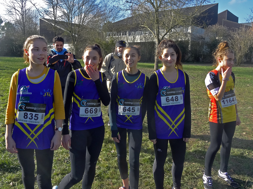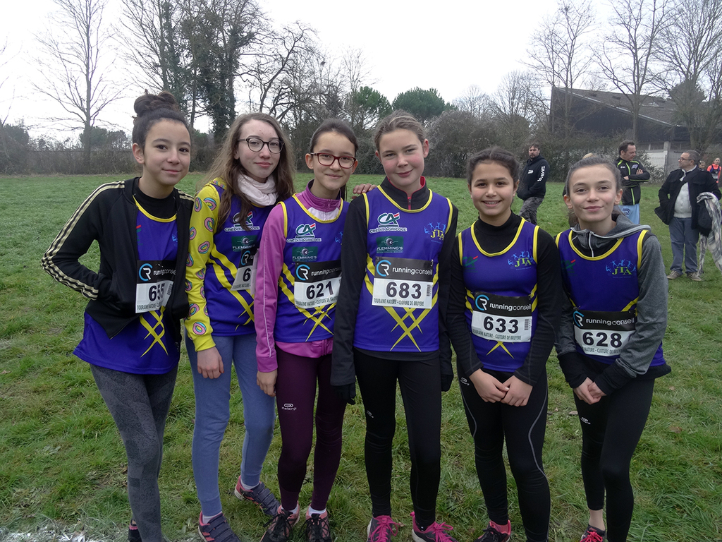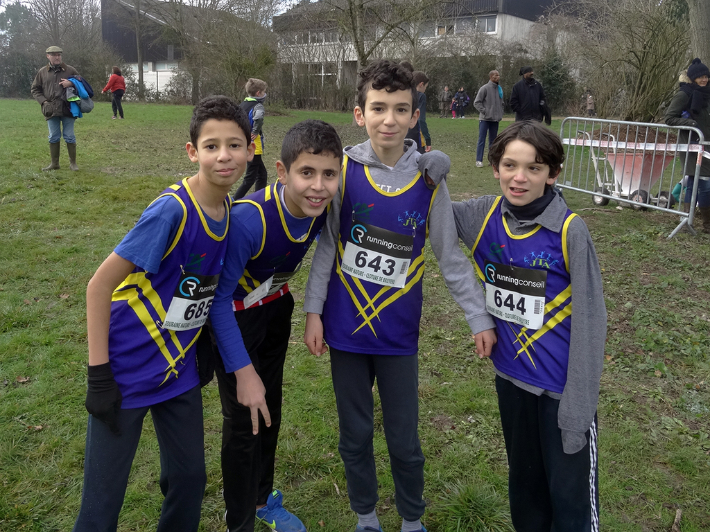 Record de participation pour le JTA avec 73 participants à ce Cross. c'était "à la maison", le temps était parfait, le parcours intéressant, tout étit réuni pour une belle journée de Cross. Une quarantaire de super poussins et poussines ont effectué leur boucle de 700m, on peut regretter, surtout les enfants, l'absence de classement, mais c'est le règlement... Chez les Poussines, le meilleur résultat est obtenu par Elyne Bailly (10ème), l'équipe se classant 5ème avec Sirine Mertad (11ème), Eva Sarrazin (23ème) et Rosy Chevallier (32ème). Seuls 3 Poussins étaient présents, donc pas d'équipe. En Benjamines belle course de Juliette Blanchet (8ème), devant Lauriane Chagneau (20ème), Justine Sauzeau (30ème) et Ines Arnaud (52ème), l'équipe se classant 5ème. Les benjamins se classent 7èmes avec 16ème avec Wassim El Moumny (29ème), Reyan Merrouche (48ème) et Ana El Moumny (50ème). Pas d'autres équipes par manque de combattants, on retiendra surtout la très belle 3ème place d'Ousama Tahri qui confirmera sûrement aux Régionaux le 28 à Avord.