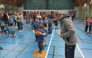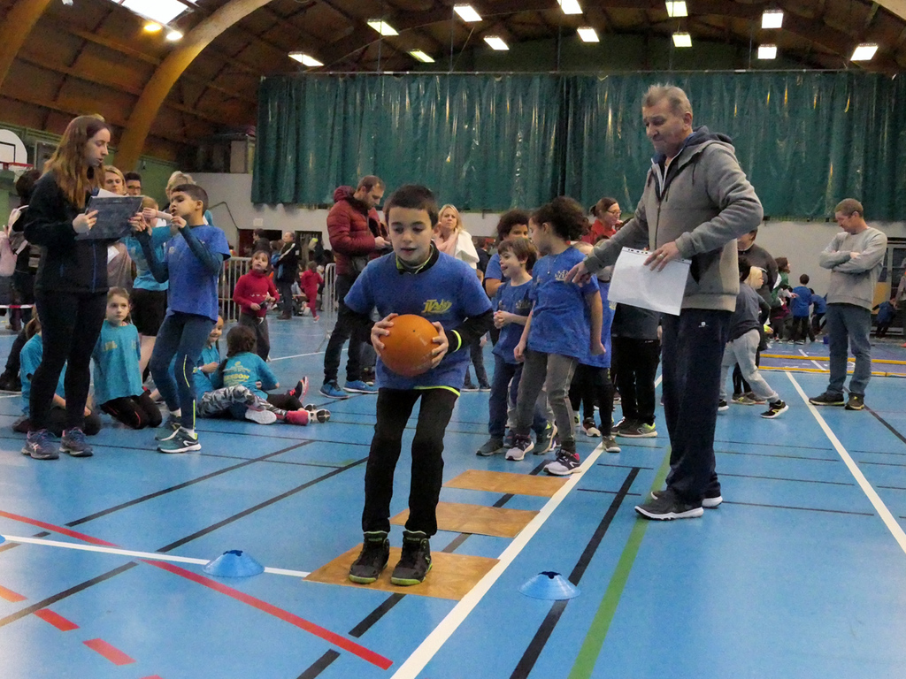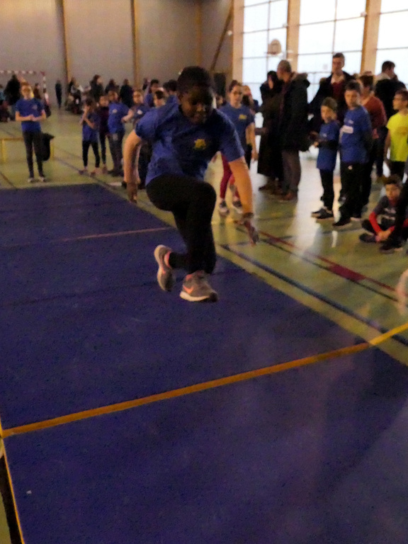 Record de participants battus à cette double compétition du 12 janvier aux Gymnases Rabière, avec un Anim'athlé par équipes pour les 102 Super Poussins dont 24 du JTA présents et un triathlon pour les 71 Poussins. Grâce à la participation de tous les clubs présents, tout s'est bouclé en 2h30, horaires plus que respectés. Règlement FFA oblige, pas de classement chez les plus petits, tandis que chez les Poussines, c'est Ines Grandenschwiller (AS Fondettes) qui l'emportait, Alban Lachot (photo) étant vainqueur chez les garçons. Bravo aux parents qui ont permis cette présence massive des jeunes du JTA !