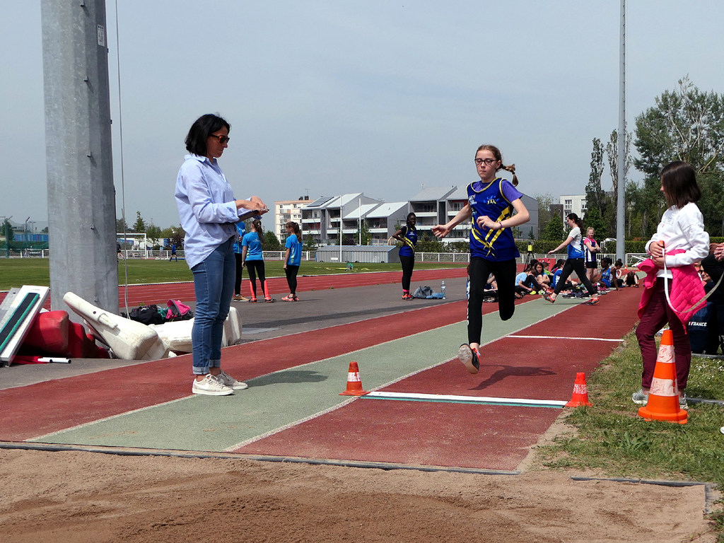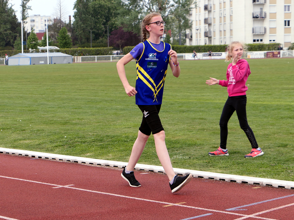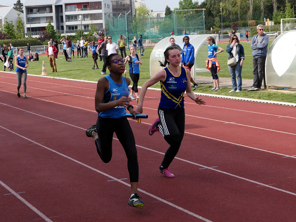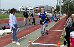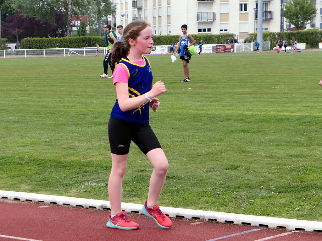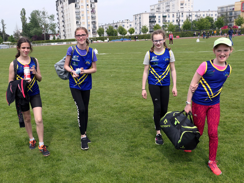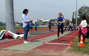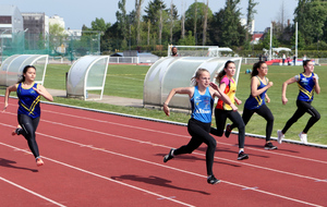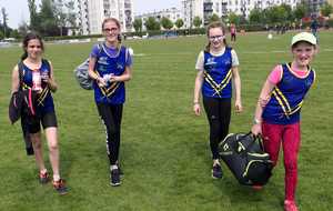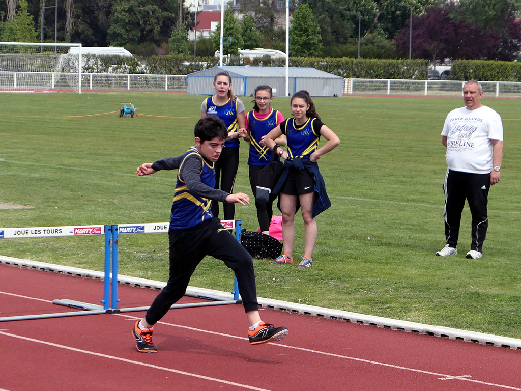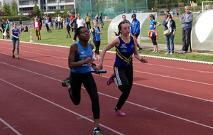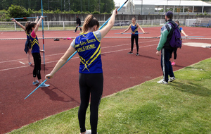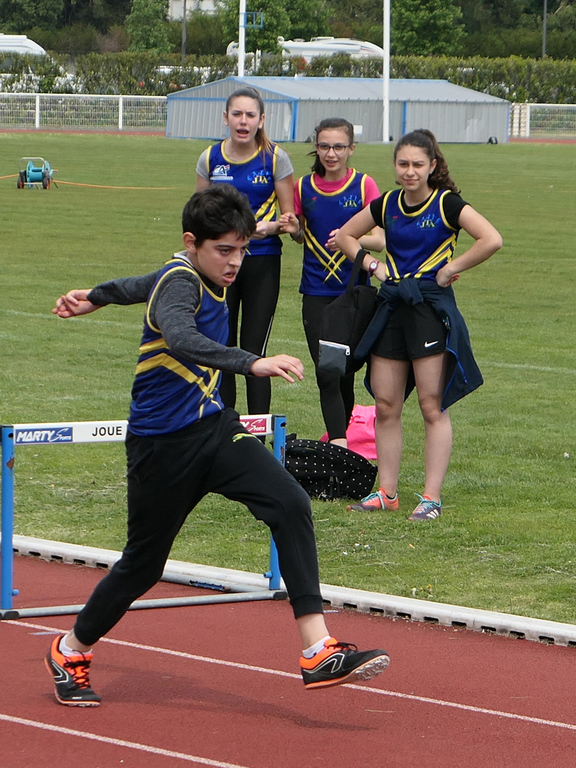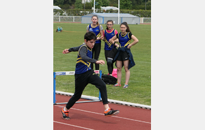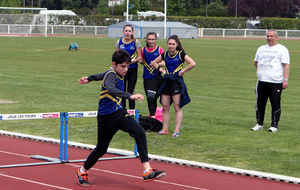 Un temps parfait pour cette compétition, les clubs du 41 qui avaient décidé de boycotter le JTA en raison d'incidents en tribune l'an passé (pour le première fois en 32 ans !!!) ont eu bien tort. Chez les Benjamins, pas de relais en raison d'un forfait, mais les garçons réalisent quand même 175 points, avec Ulysse BELOUAD MEIGNAN (photo) qui pulvérise son record au triathlon avec 79 points en réalisant ce total avec 3 épreuves qu'il découvrait (9"32 au 50mH, 1m30 en hauteur, 23m87 au javelot) ! Les Benjamines se classent 5èmes avec 197 points, une erreur d'engagement les prive de la 4ème place. Elyne BAILLY, Alice BOIRAL, Alise POISSY et Eva SARRAZIN (68 points pour Eva) améliorent leur meilleur triathlon, et 6 records personnels sont améliorés. Les Minimes obtiennent le meilleur résultat du JTA en étant 3èmes à égalité de points avec les deuxièmes (278 points). 7 records personnels sont battus, et on retiendra particulièrement les belles performances de Juliette BLANCHET (3'32 au 1000m et 1m39 en hauteur), Rihab AMARA (4m27 en longueur), Moly KALANGA KONGOLO (8m81 au poids) et Camille MONTIBUS (20m01 au javelot. On n'oublie pas nos deux marcheuses Abigail CASSET et Alise POISSY qui ont fait la compétition à 2 et ont du se sentir bien seules... Les résultats du JTA ICI.