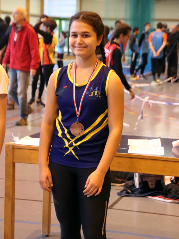 Pas moins de 21 jeunes athlètes du JTA pour cette journée des qualifications aux championnats régionaux qui servait de support aux championnats départementaux en salle. Beau tir groupé des Benjamines avec 3 filles dans les 10 premières, Elise BARBET 7ème, Elyne BAILLY 5ème et podium pour Eva SARRAZIN, 3ème. Chez les Minimes, Juliette BLANCHET se classe 7ème en batant sa meilleure perf à la hauteur, tandis que Lauriane CHAIGNEAU et Assia BOUAZZAOY récoltent deux médailles de bronze au 50m et 50m Haies. Chez les garçons, Tom BRIERE se classe 8ème tandis qu'en Minimes, Aubin DESPREZ se classe 3ème au lancer du poids. Les résultst du JTA ICI.