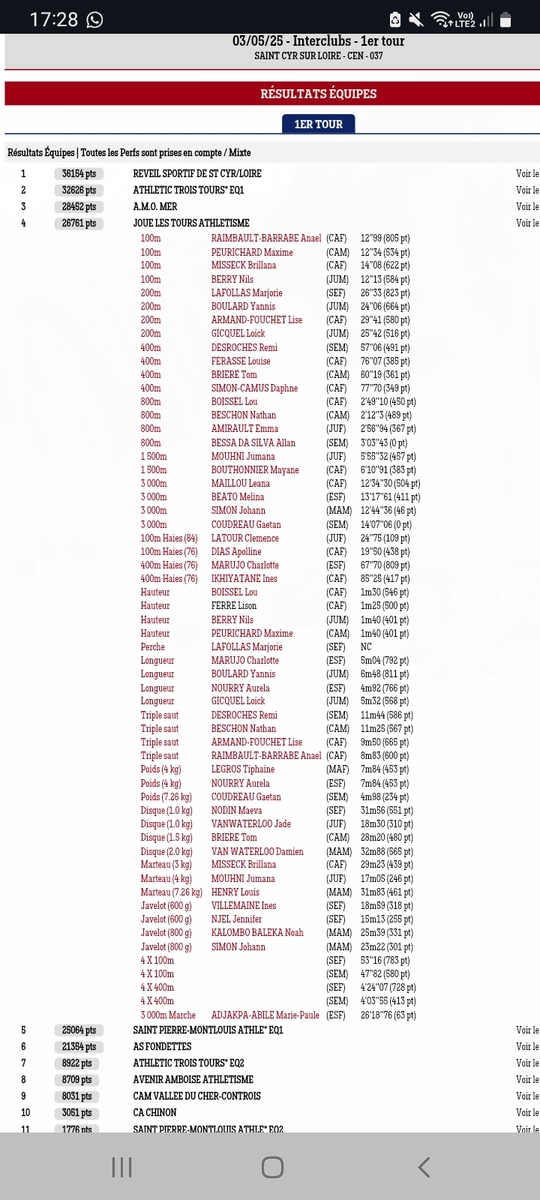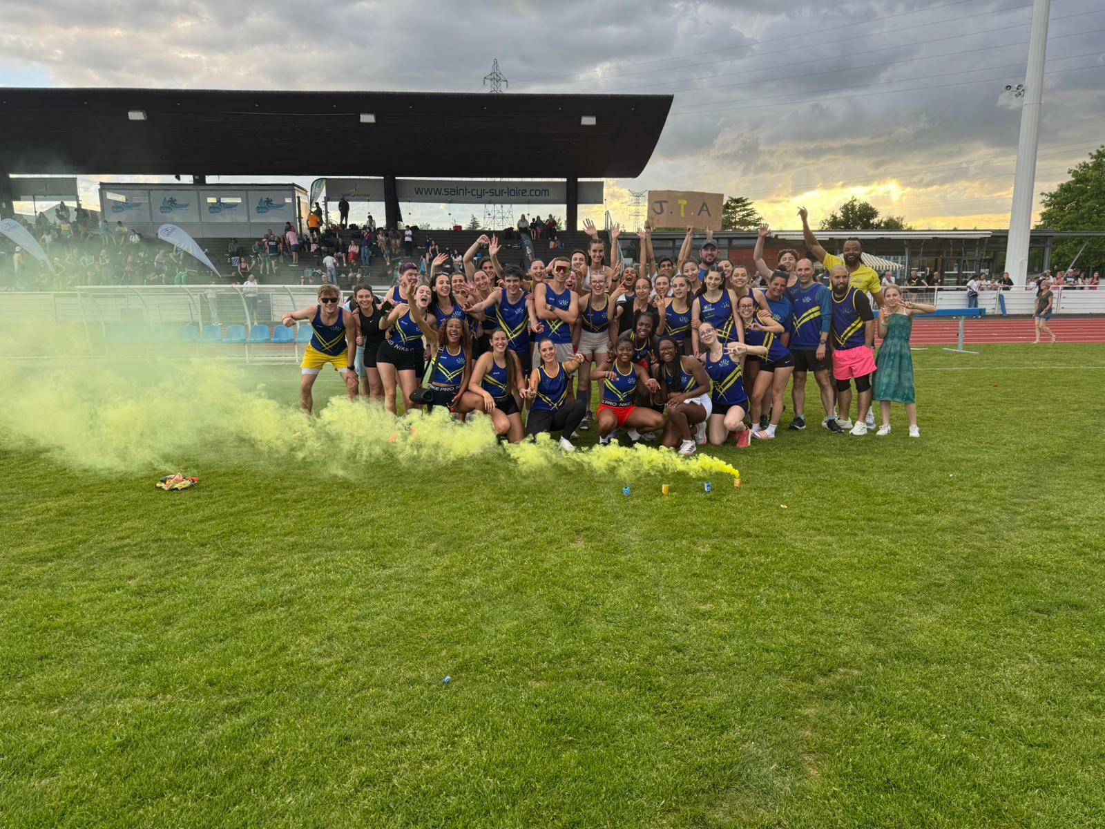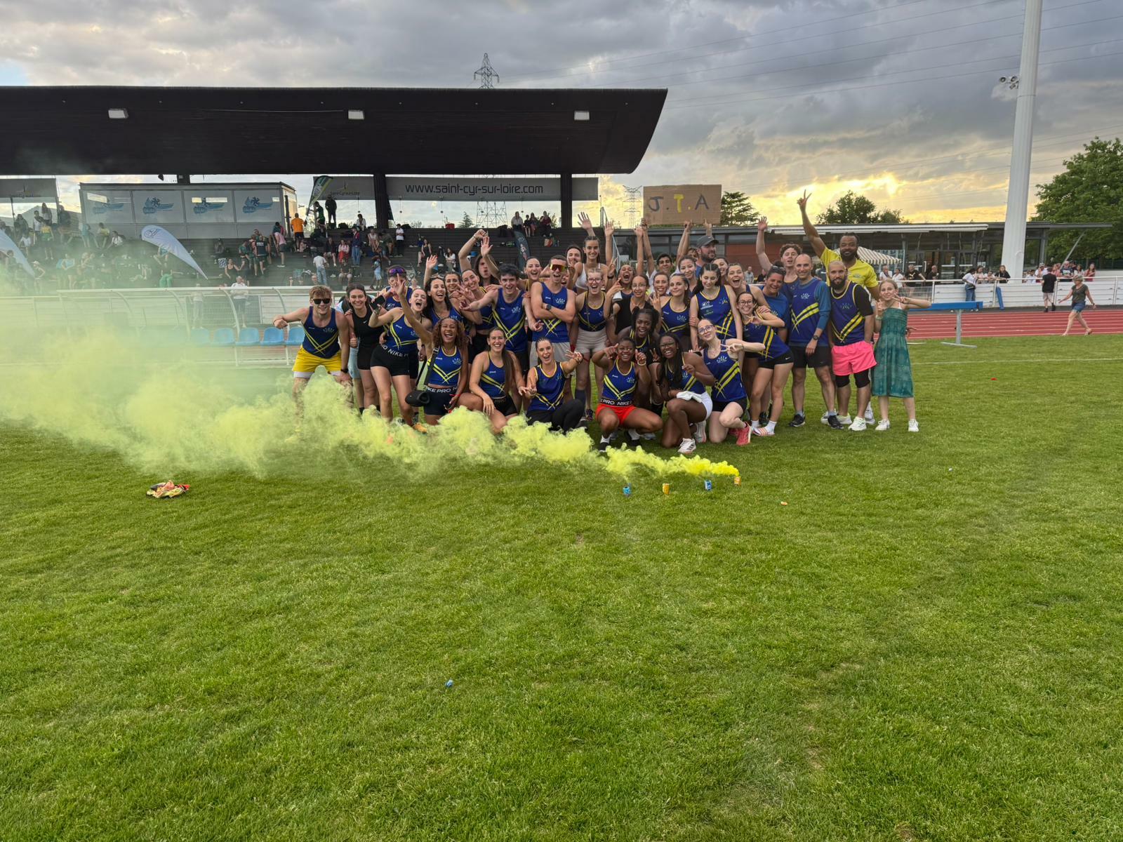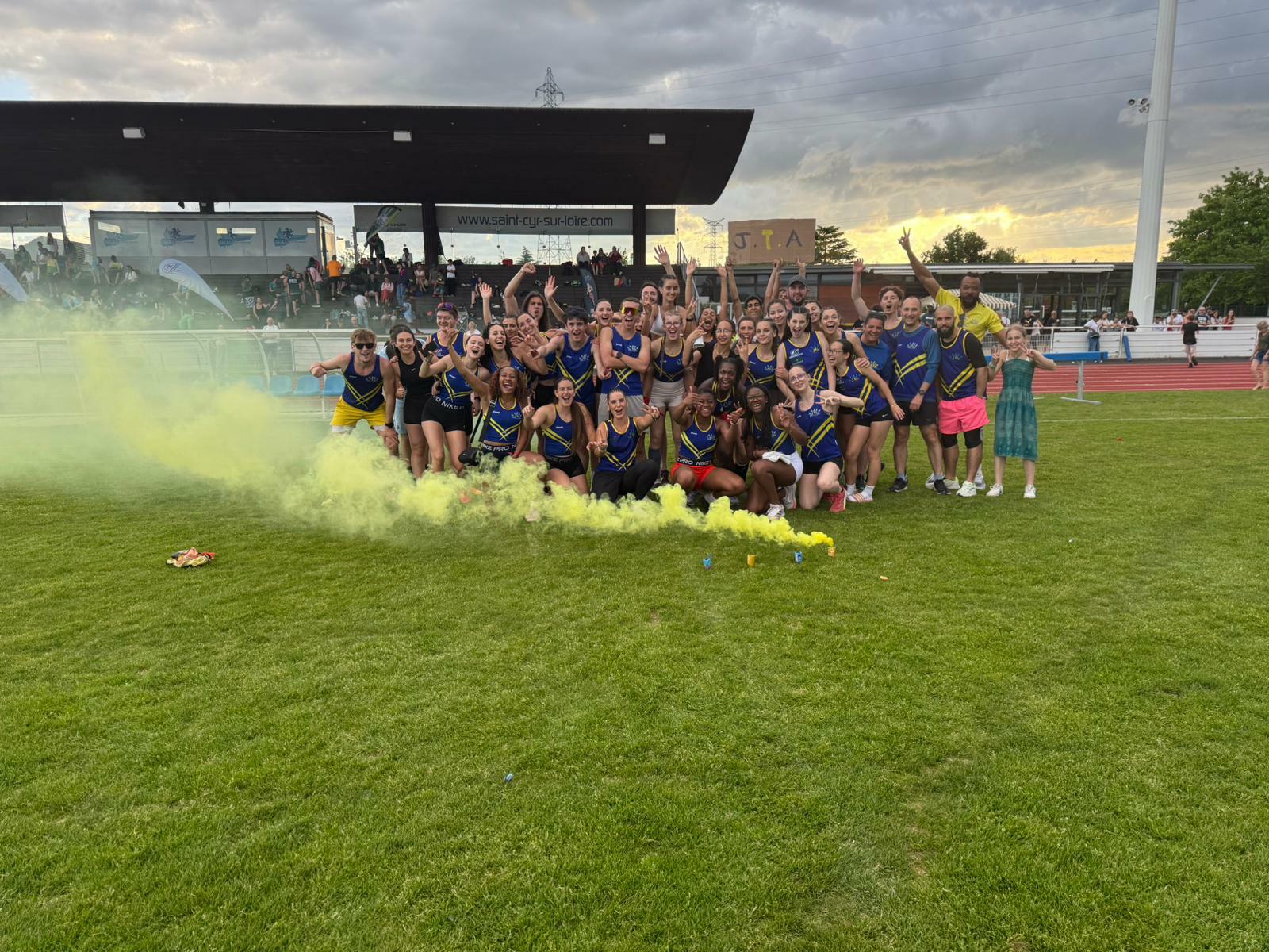 Le premier tour des interclubs s'est déroulé le samedi 3 mai 2025 à Saint-Cyr-sur-Loire. Nos athlètes CA+ maquillés en bleu et jaune ont mis l'ambiance dans le stade et réalisé de bonnes performances dans toutes les disciplines, tant feminines que masculines. Avec 26721 points (soit presque 5000 points de plus qu'en 2024, le JTA se classe 4ème, et même 3ème du 37, derrière le RSSC et l'A3T! De bonne augure pour le deuxième tour programmé le 18 mai, à nouveau à Saint-Cyr (poule regionale).