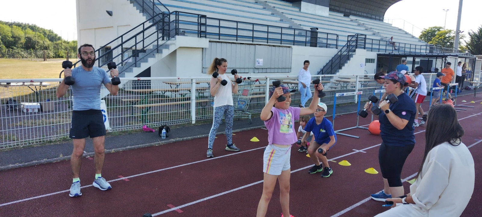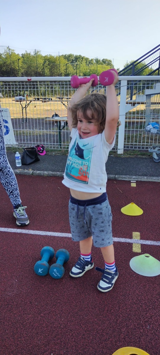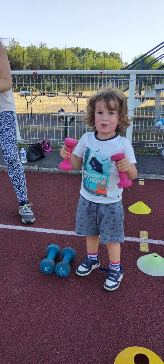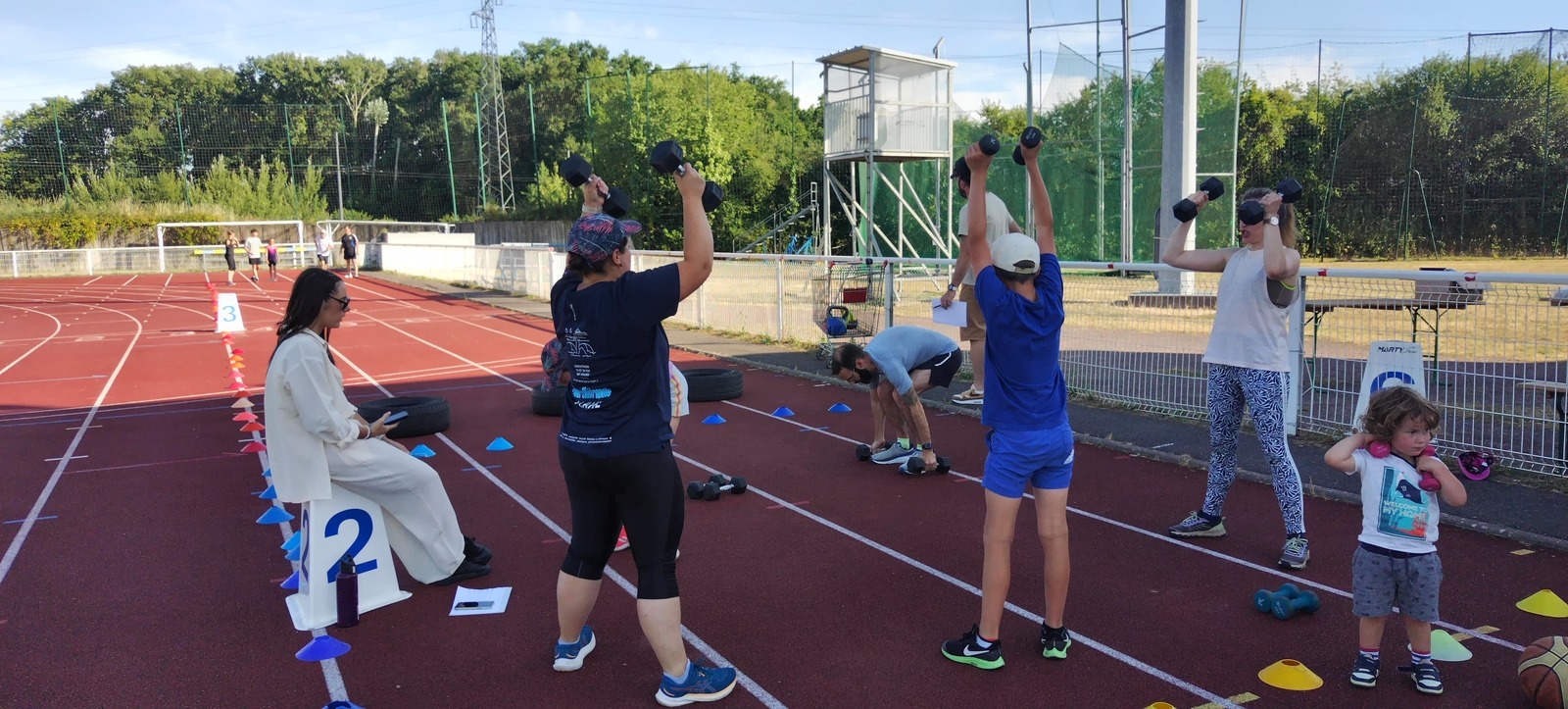 Noah a d'abord préparé un challenge sportif aux 25 participants âgés de 3 à 65 ans répartis en 5 équipes.