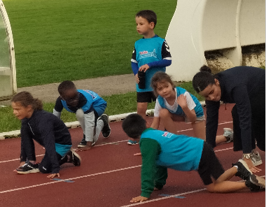 12 éducateurs (bénévoles, parents et/ou athlètes du club) ont encadré des groupes de 7 à 8 enfants, qui ont enchainé les 6 ateliers de course, lancer et saut adaptés à leur âge (6-8 ans pour les éveils athlétique et 9-10 ans pour les poussins).