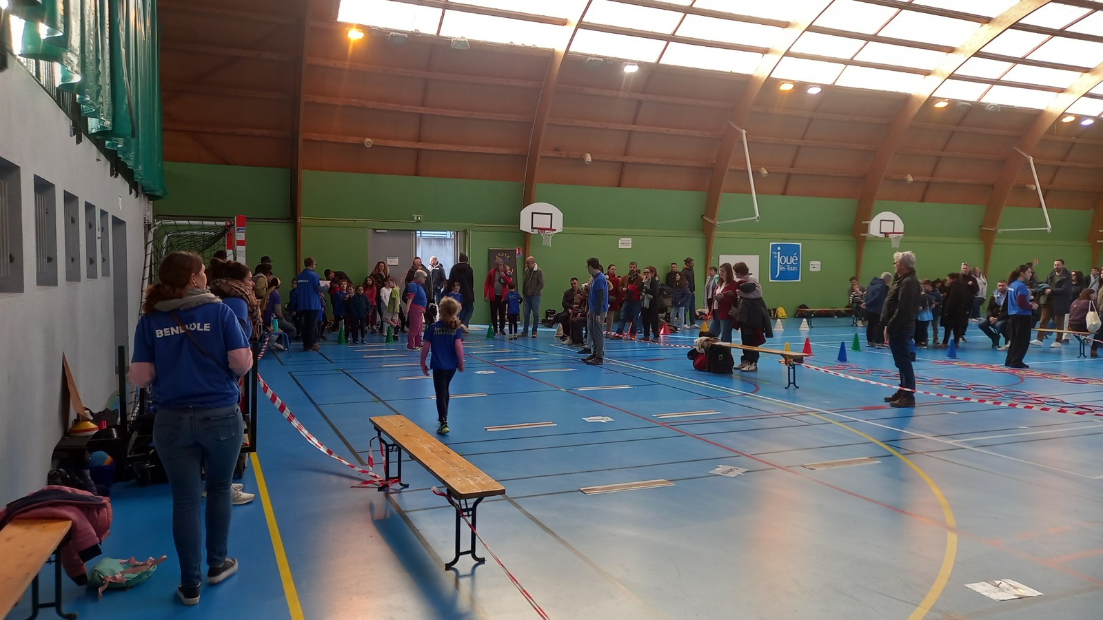 Pour accueillir autant d'enfants (et leurs accompagnateurs), les organisateurs ont du adapter la configuration des lieux en déplaçant des ateliers et des épreuves de courses sur la piste à l'extérieur, ainsi que la buvette (merci à la météo clémente...).