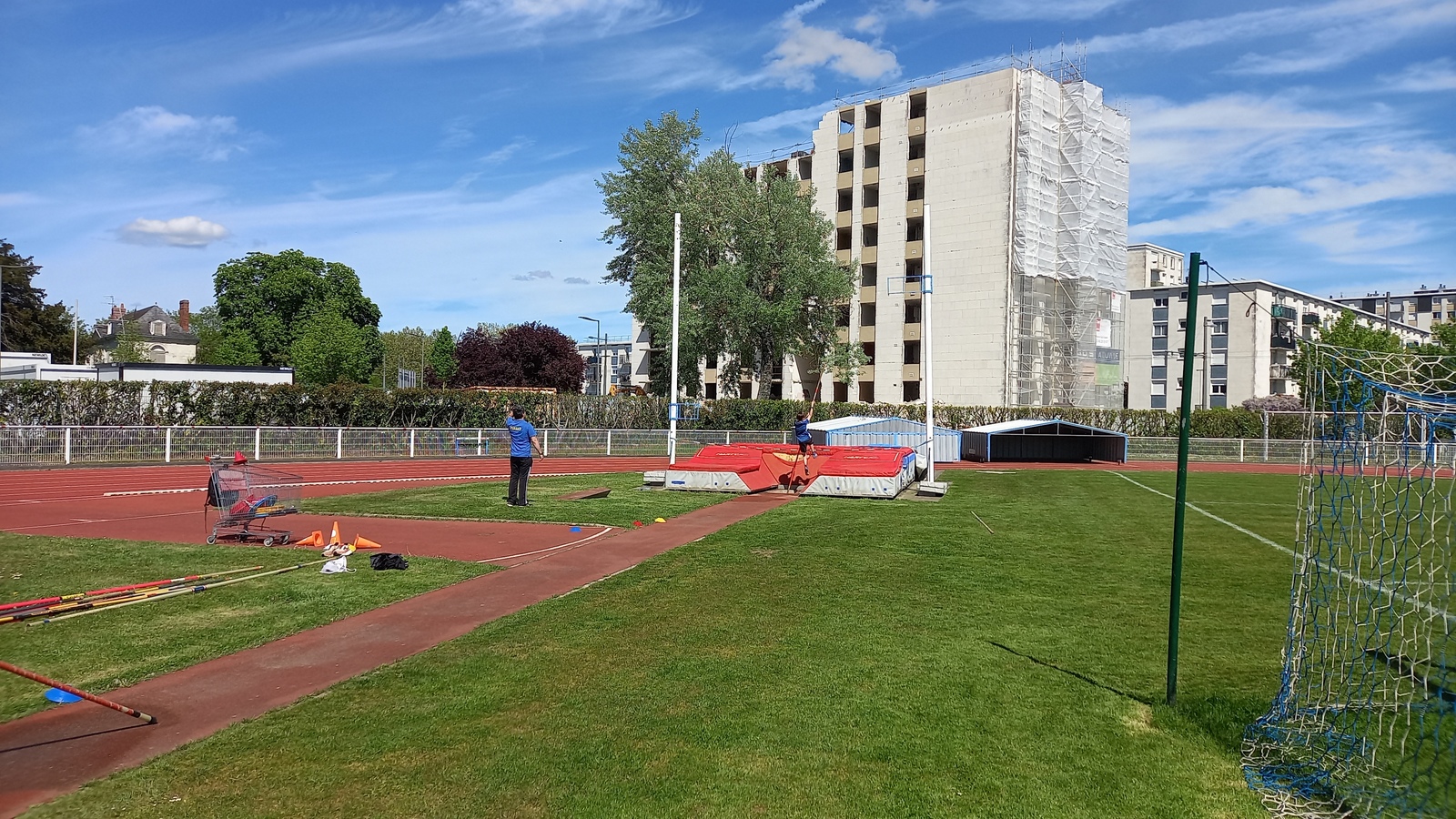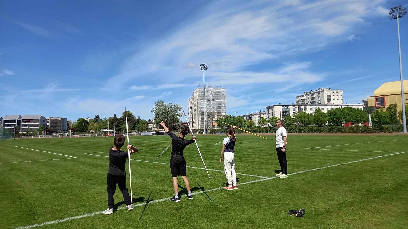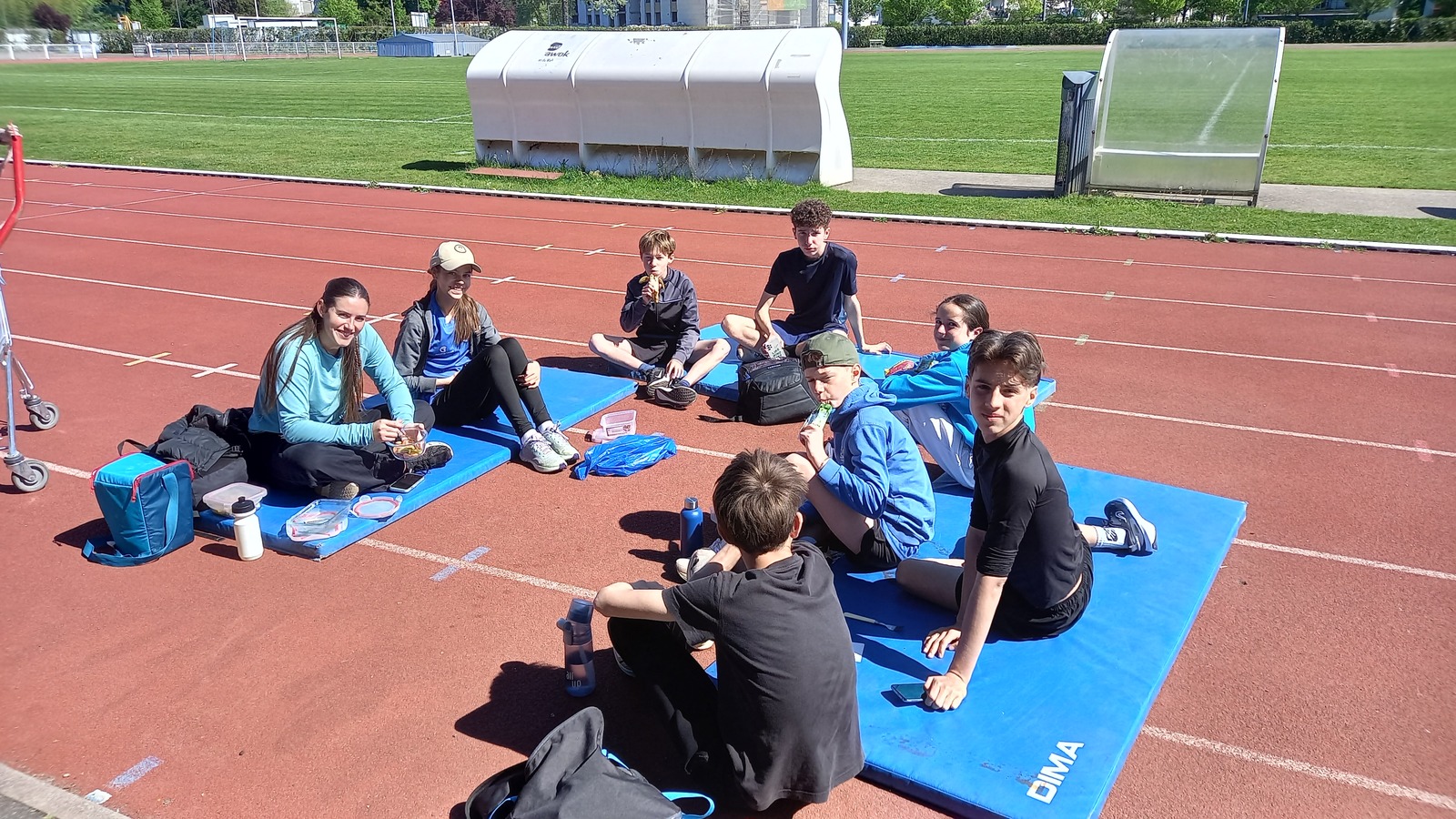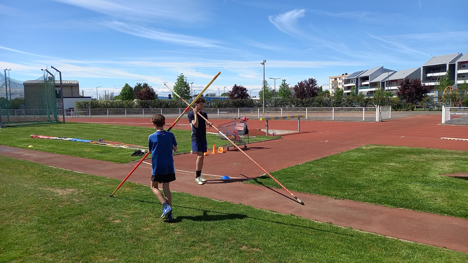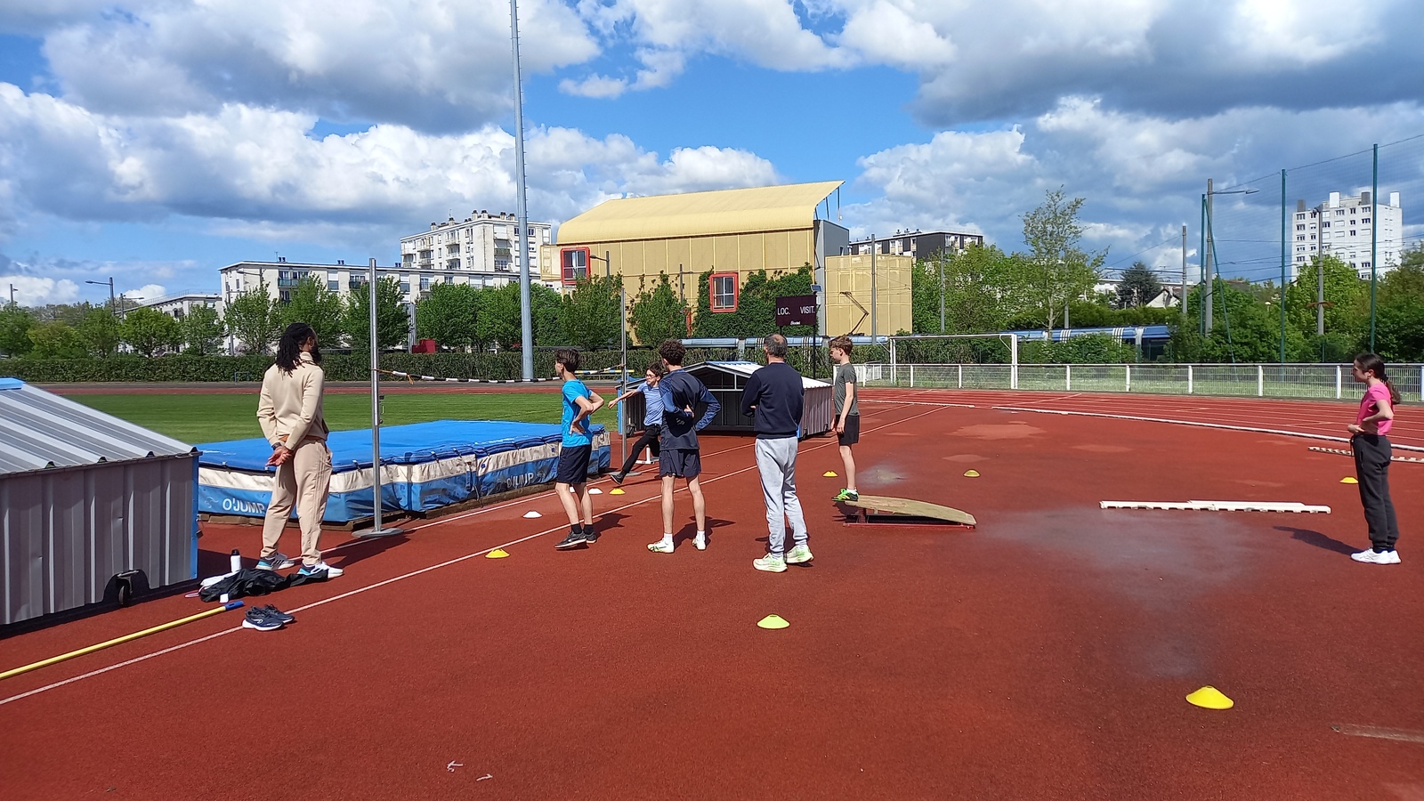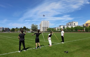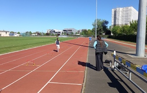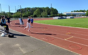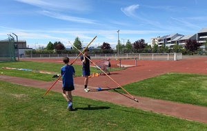 Malheureusement, peu d'athlètes se sont finalement inscrits mais les 2 benjamins, 5 minimes, 1 junior et 1 senior présents ont pu parfaire leur technique au sprint, aux sauts (hauteur, triple, perche et longueur) et aux lancers (disque et javelot) grâce aux precieux conseils de Noah, Michael, Louis, Maeva et Fabrice.